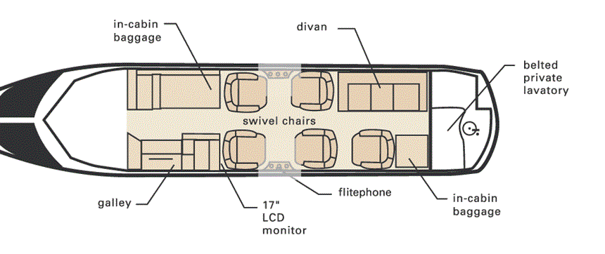 Pro obchodní jednání v oblacích je ideální tento letoun Hawker 800XP. Nejen že vás dopraví třeba až do Afriky, ale nabízí také maximální komfort i při plné kapacitě letadla. Hawker 800XP má vše, co potřebujete na své cesty nejen za obchodem.